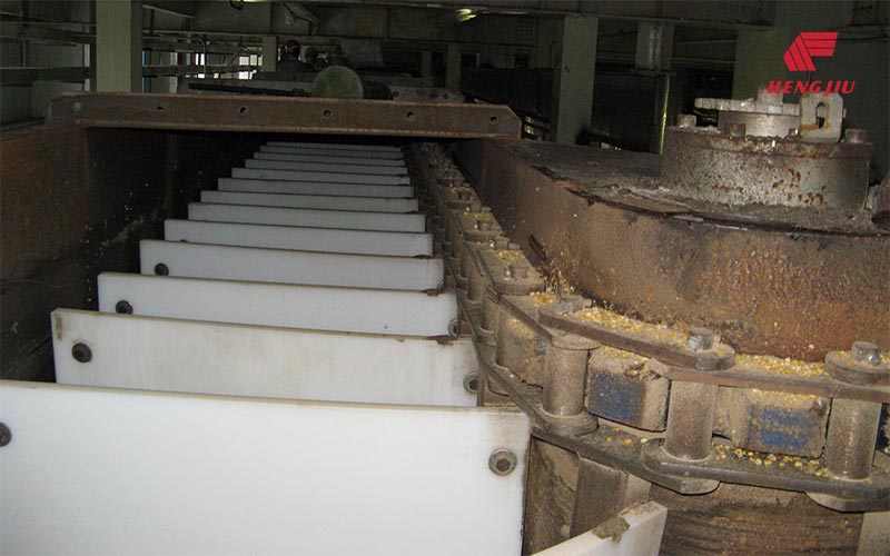 恒久公司生產的糧油行業用鏈條三種結構,其中滾子(或套筒)鏈和焊接彎板鏈結構的鏈條通過與各種附件進行靈活的組合,滿足糧油加工生產線上的多樣性需求。塊式結構方式的鏈條主要應用于浸出器設備內部的物料輸送。