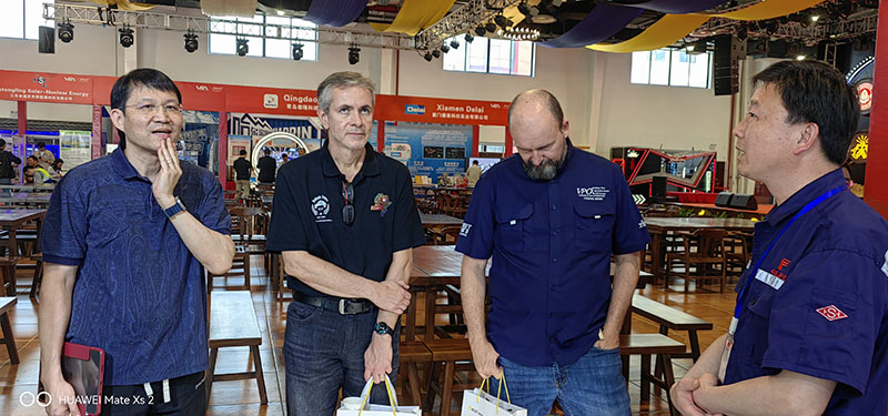 展會期間,百威全球酒廠支持副總裁帶領百威各大區酒廠支持負責人一行來到黃山恒久公司展位,駐足觀展,并與參展負責人深入交流,了解“黃山牌”鏈條(鏈網)產品特色,以及企業技術創新、生產經營等情況。希望共同挖掘合作潛力,拓展合作空間,建立強大的戰略合作伙伴關系。