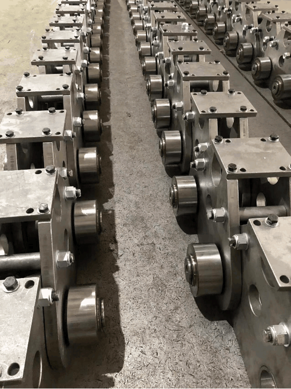 本次訂單由國內某大型鋼鐵企業(yè)采購,共4套鏈條,16只大型非標鏈輪,每根鏈條長度為108節(jié),單根鏈條的重量達12.6噸。