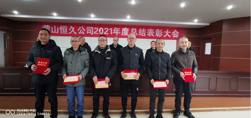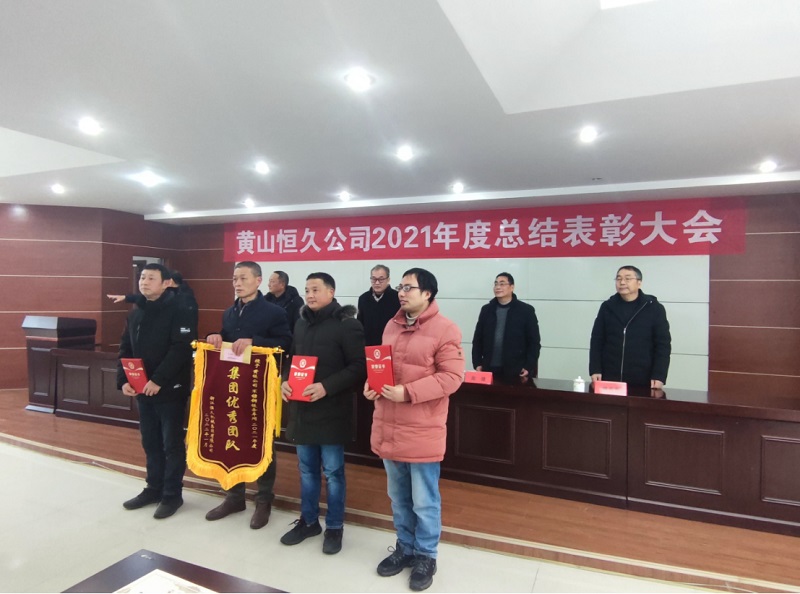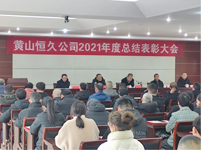 牛耕綠野千倉滿,虎嘯黃山百業興。1月28日下午,黃山恒久公司2021年度總結表彰大會隆重召開。會議總結回顧了2021年度各項工作,表彰獎勵了一年來在生產經營工作中涌現出的先進集體和個人,安排部署了2022年各項工作。公司黨委書記、總經理陳亦兵作了題為《堅定發展信心 鼓足超越干勁 努力對標建設國家級專精特新重點“小巨人”企業》的工作報告。公司領導班子成員、各車間(處室)負責人、受大會表彰的各級各類先進集體負責人以及先進人員、第四屆黃山恒久工匠100多人參加會議。會議由公司黨委副書記、工會主席、總經理顧問周平主持。