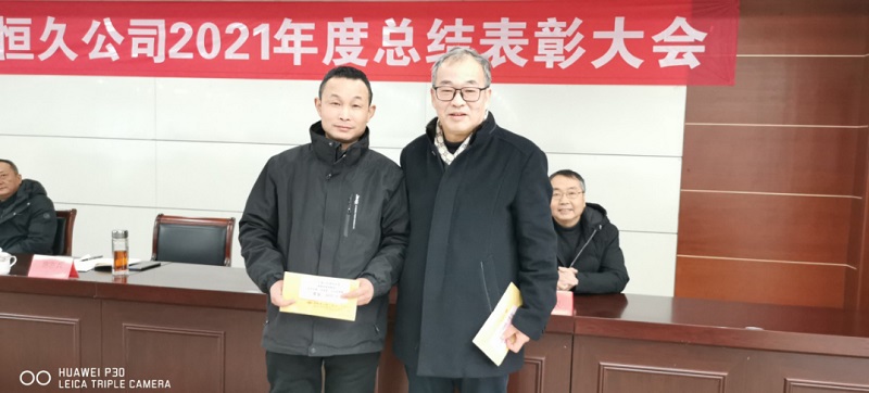 會上,常務副總程國東宣讀了浙江恒久集團《關于表彰2021年度優秀個人和優秀團隊的決定》,黃山恒久公司《關于表彰2021年度先進集體和先進個人的決定》《關于對2021年度車間生產提效、“六七”活動及管理團隊機物料消耗管控等進行表彰的決定》。公司層領導給獲獎的先進集體、先進個人頒發了獎牌、證書和獎金,給生產提效、“六七”活動、管理團隊機物料消耗考核項目獎以及離散型智能制造技術創新“串珍珠”活動成果獎、外銷業務員個人年銷售額首次突破5000萬元貢獻獎獲得者頒發了獎金。