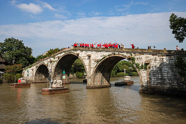 京杭大運河是世界上最長的人工運河,南起余杭(今杭州),北到涿郡(今北京),流經(jīng)七個省市,全長1797千米。2014年6月22日,中國大運河項目正式列入《世界遺產(chǎn)名錄》,長約40公里的大運河杭州段被評為AAAA級景點。此次徒步線路包含了拱墅區(qū)運河十景的一半,有拱宸邀月、橋西人家、香積梵音、富義留馀、武林問渡。此外還有非常多的景點,如半道春紅、江橋暮雨、香積寺、乾隆墨寶、御碼頭、賣魚橋碼頭等等。