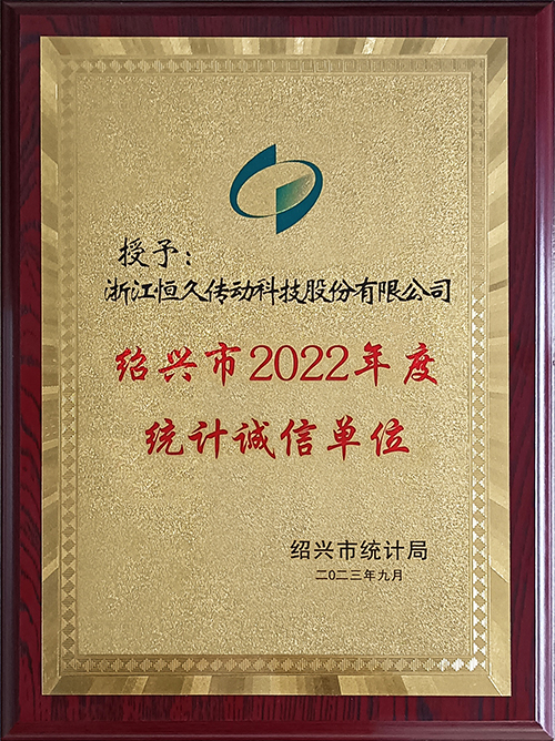 浙江恒久傳動科技股份有限公司榮獲“紹興市2022年度統計誠信單位”稱號,集團副總鐘宏燕上臺接受獎牌。