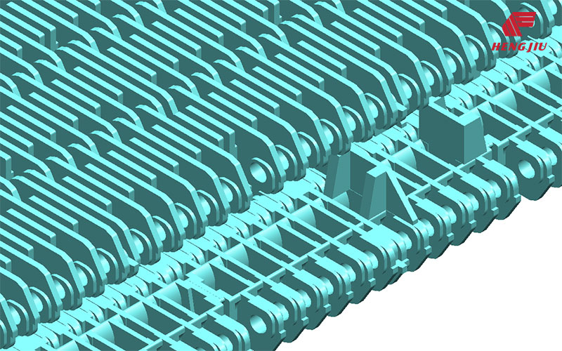 平頂鏈網/頂部封閉如果產品因其易損性及不穩定性而要求有最大的支撐能力時,并且存在一些會卡在鏈網表面并有可能損壞或堵塞產品,或鏈網的小顆粒如玻璃碎片、螺栓和螺母或產品本身時,通常會采用完全閉合的表面設計方式。