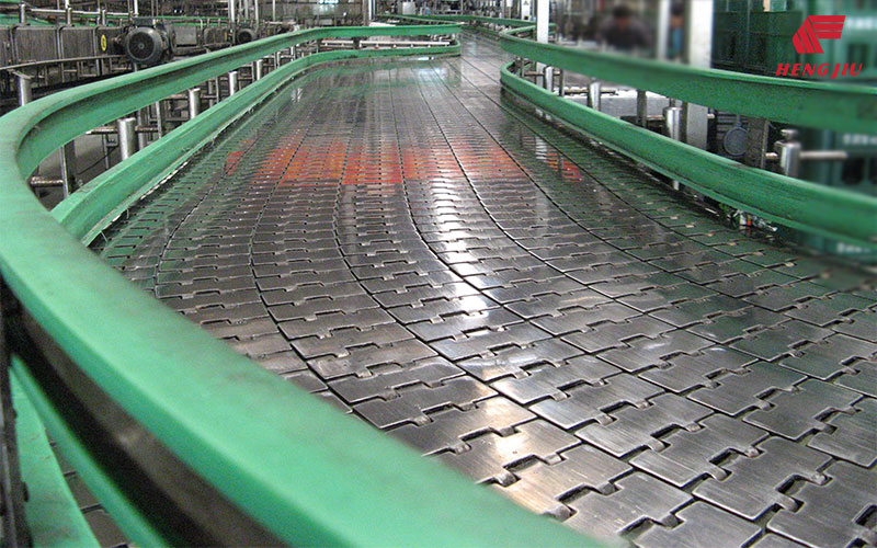 不銹鋼平頂鏈規格多達60余種,其選型應根據輸送機的使用工況來確定,涉及要素應包括但不僅限于如物品特性、物品對環境的要求、裝載量、鏈條線速度、鏈條與導軌的摩擦系數、主從動輪間中心距、潤滑條件、溫度等。在潤滑條件良好的條件下,平頂鏈的傳送線速度最高可達到120m/min。