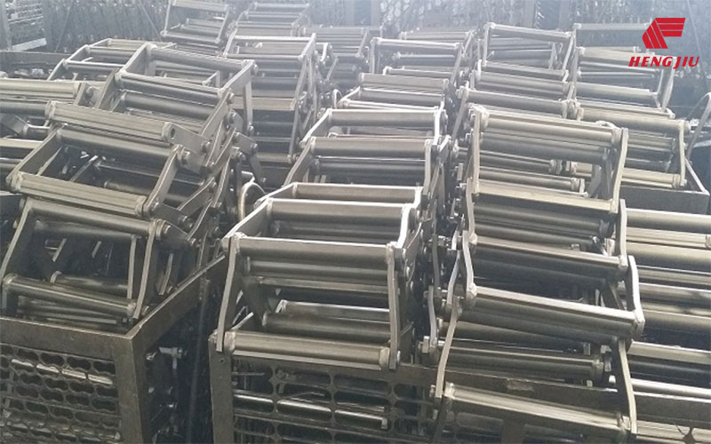 彎板鏈節采用新型專用自動焊接機焊接,一次裝夾同時完成雙側焊縫,鏈節上的各類附件采用機器人焊接,確保穩定的焊接質量和尺寸精度。同時焊接過程嚴格按工藝評定要求進行焊縫強度、焊接熔透性、熱影響區硬度等項目的檢查。